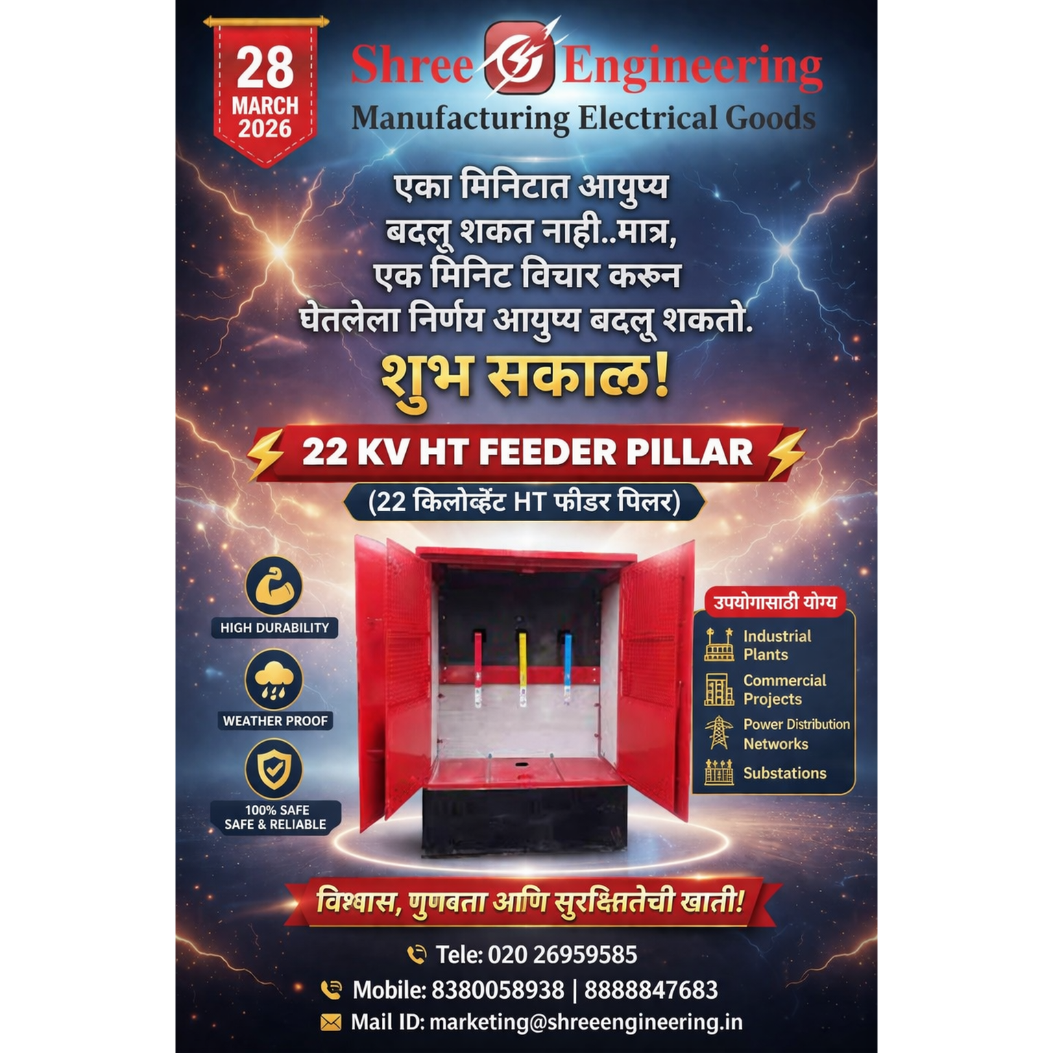 The 22kV HT Feeder Pillar by Shree Engineering is a robust and reliable electrical distribution unit designed for handling high-voltage power supply systems. It is specially engineered for outdoor installations, ensuring safe and efficient power distribution across industrial and commercial applications.